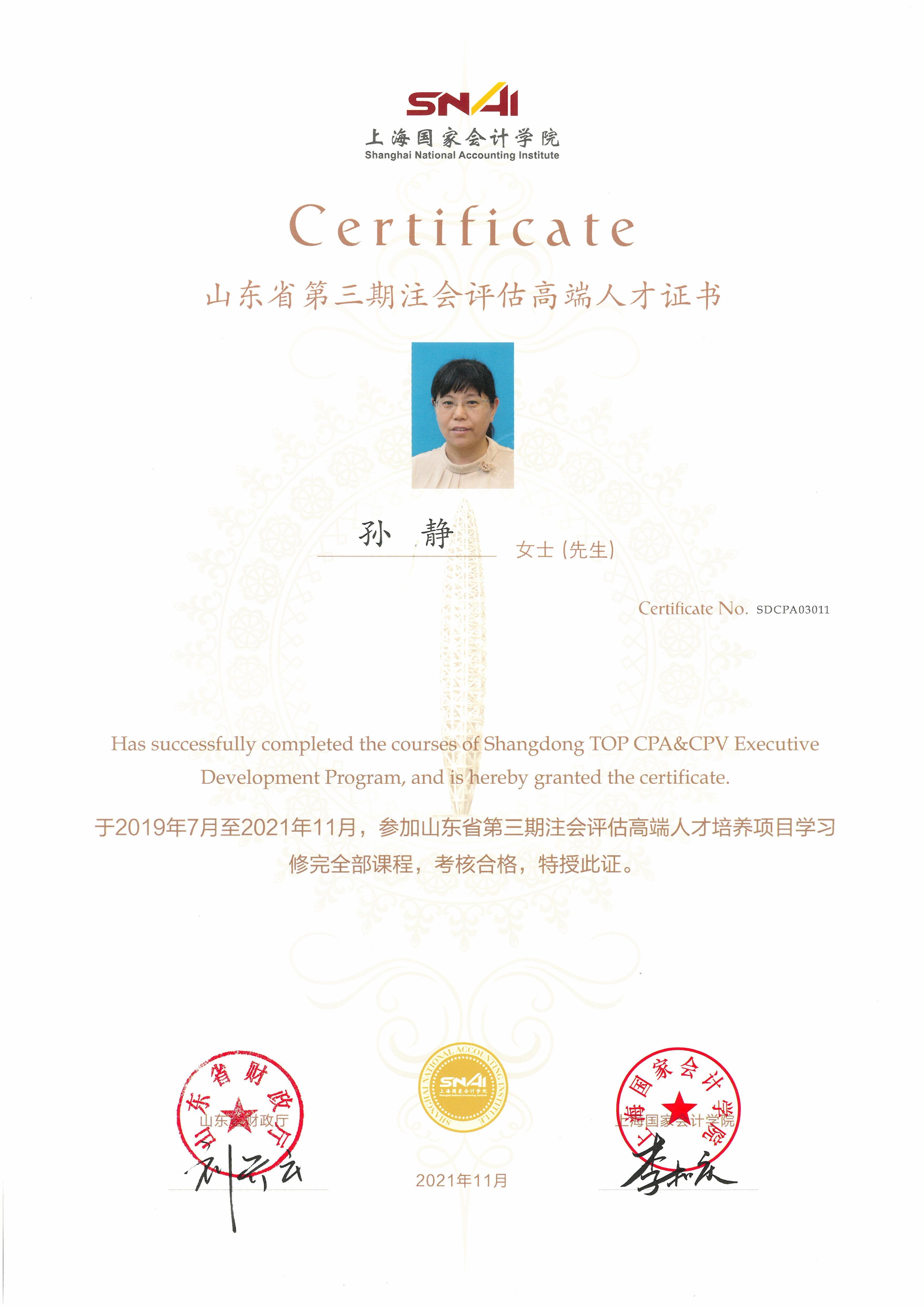 我事務所三名同志圓滿完成省第三期注會評估高端人才培訓