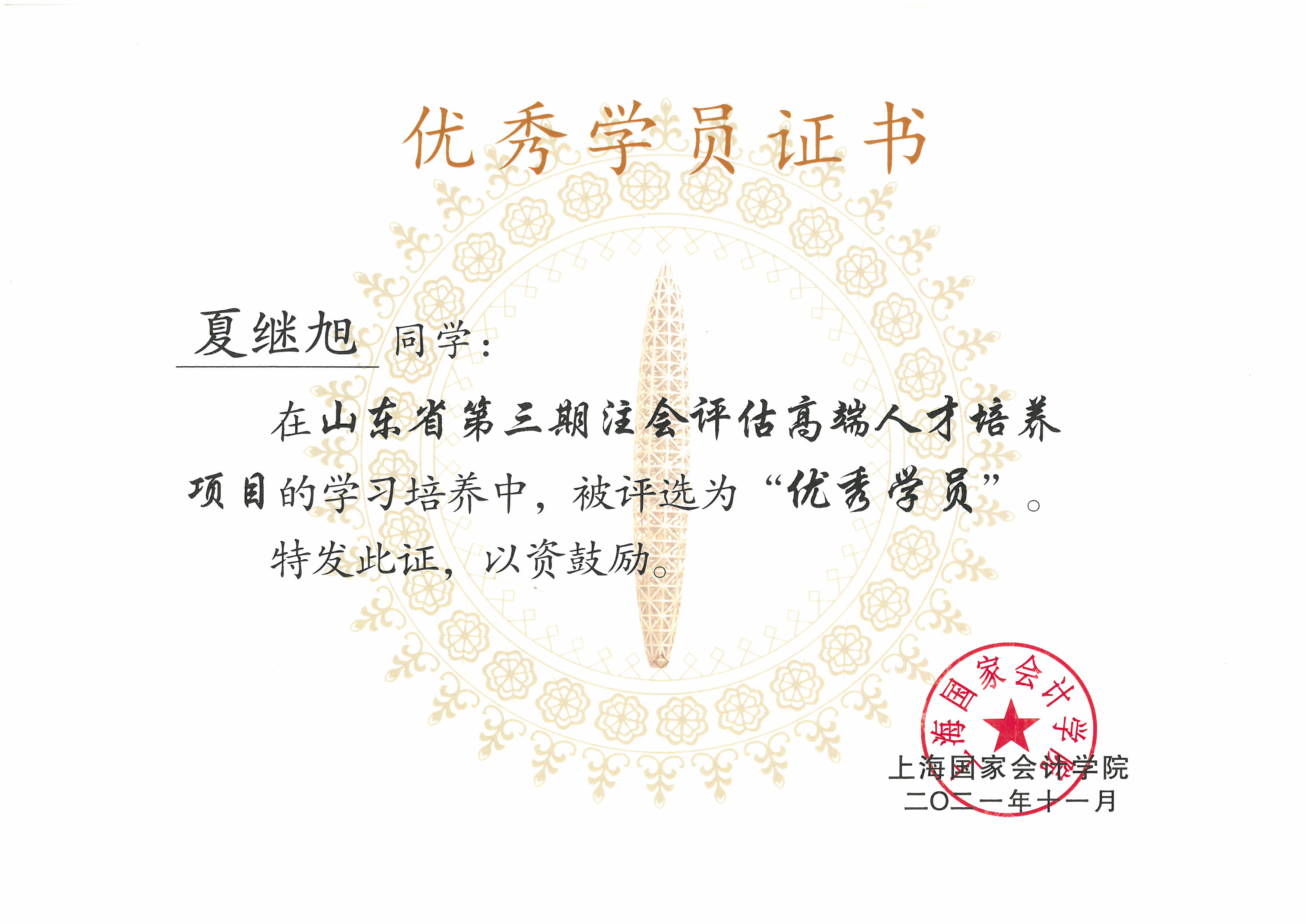 我事務所陳寶、夏繼旭、孫靜三名同志經嚴格考核選拔為第三期高端人才培訓人選,參加了為期三年的培訓,交出了一份出色的成績單,正式成為省高端人才,夏繼旭同志被評為優秀學員。